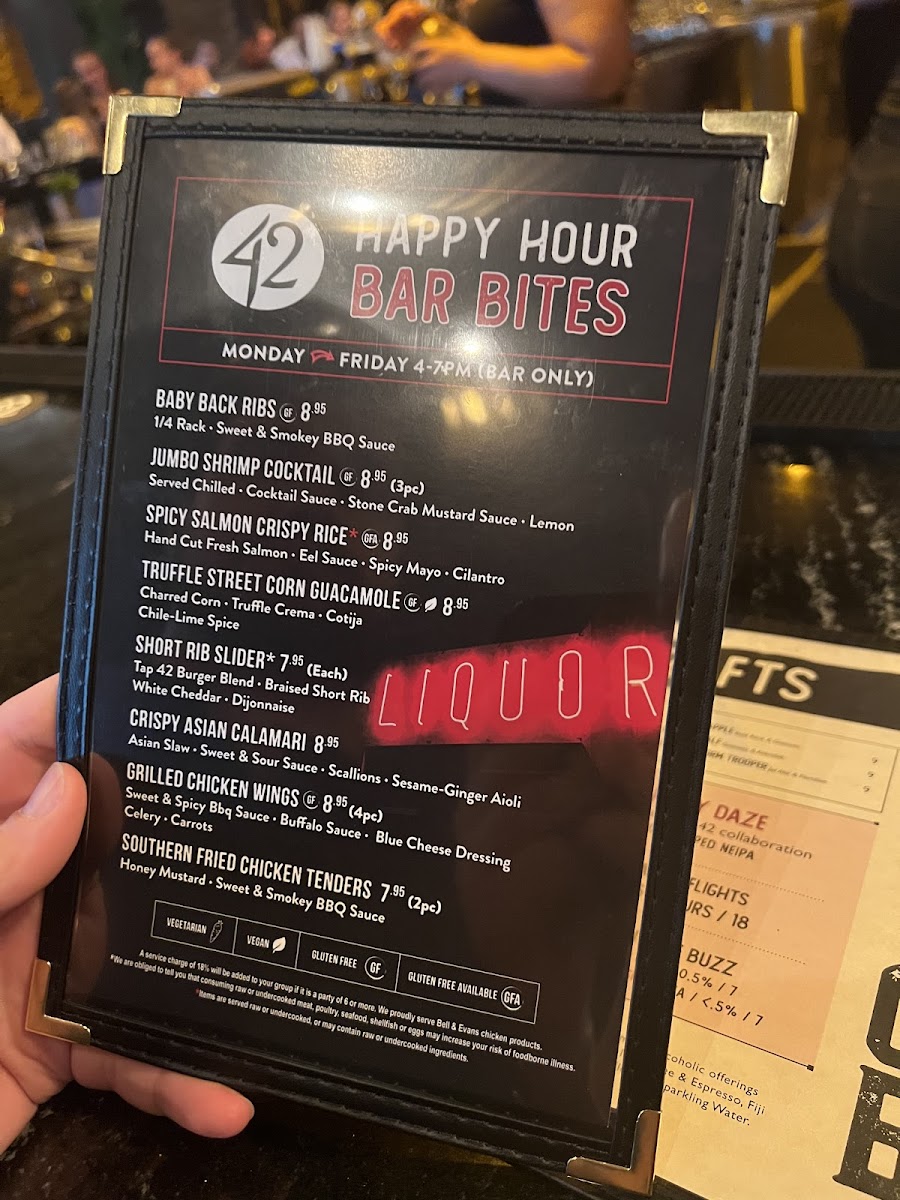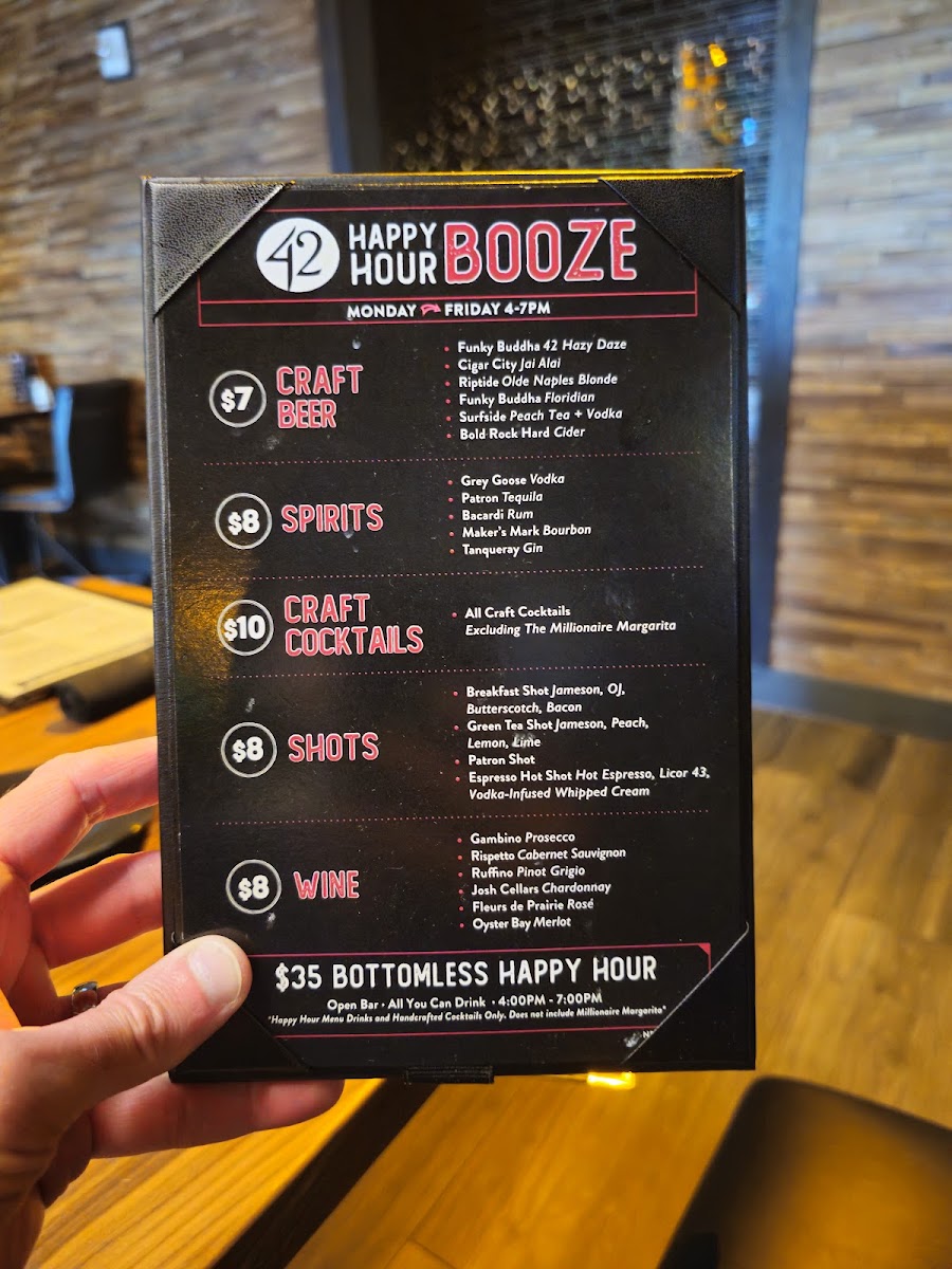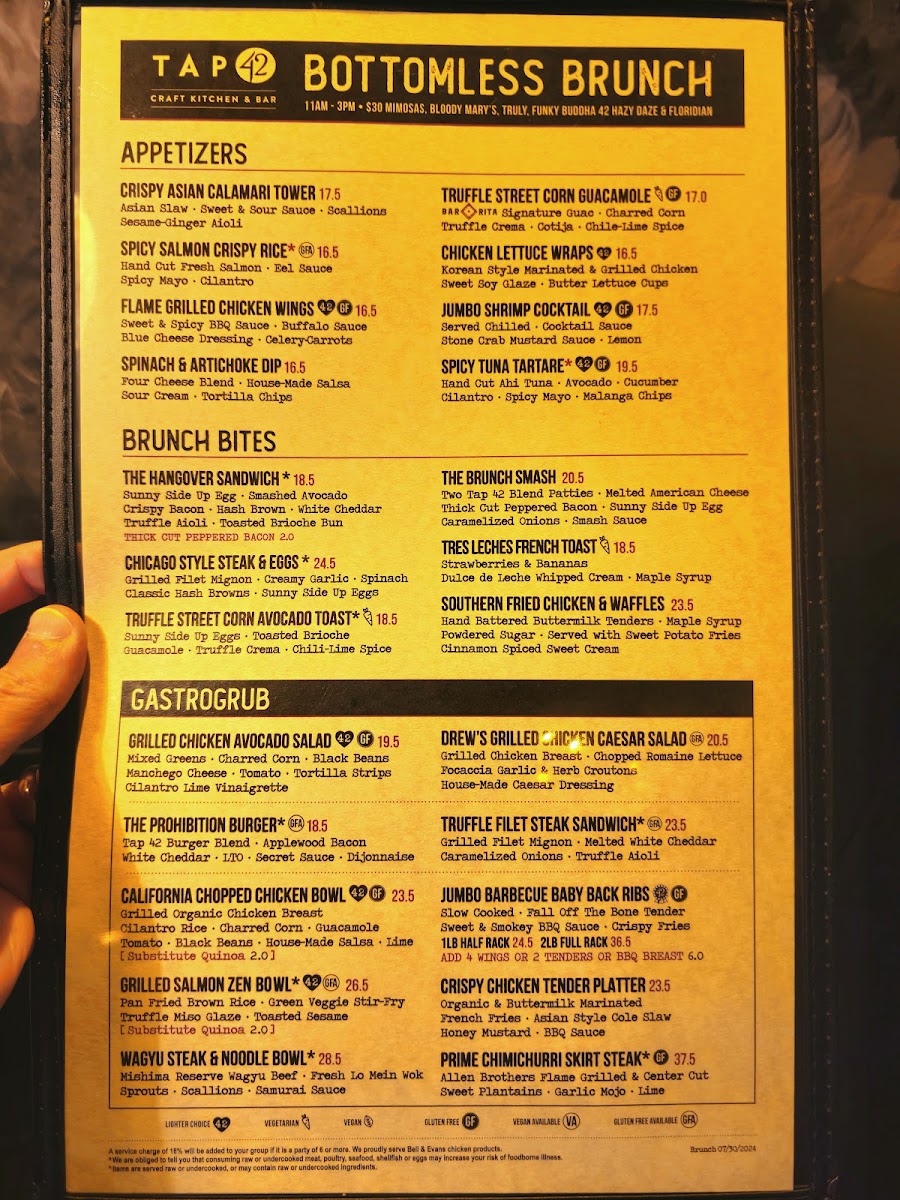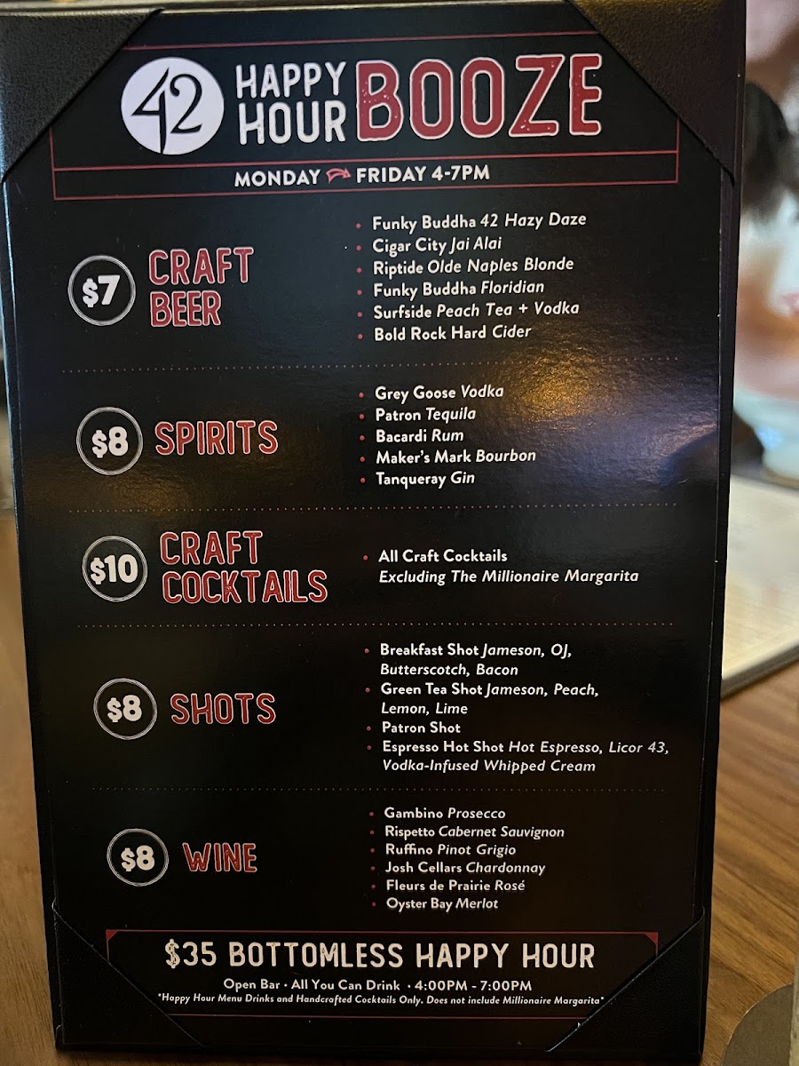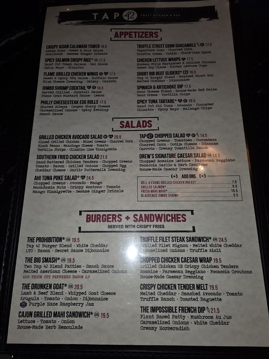 Tap 42 Craft Kitchen & Bar - Naples Menu